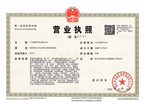 我公司于2022年3月2日,變更公司名稱為“廣東登峰氣體有限公司”。